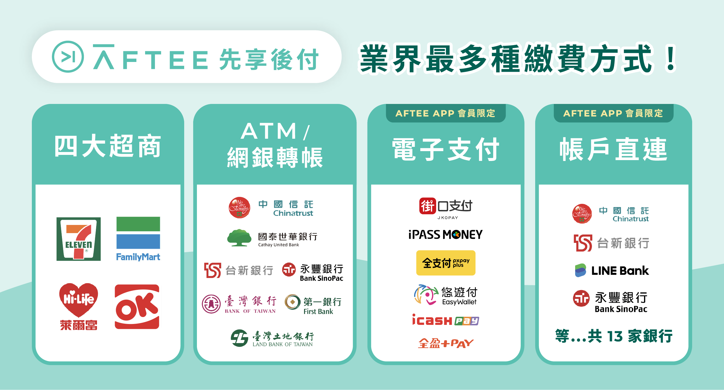 - 實際額度以【AFTEE先享後付】授權為主,如有額度相關疑問,請諮詢「AFTEE先享後付」客服